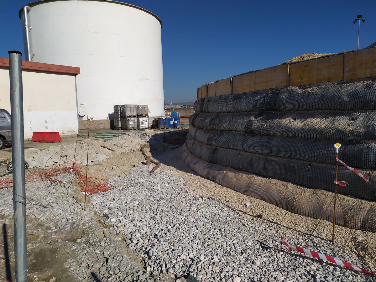 Αναλυτικά, οι εργασίες αφορούν σε ροφόρτιση εδάφους και κατασκευή χαλικοπασάλων, κατασκευή θεμελίων δεξαμενών από σκυρόδεμα περιλαμβανομένων παρελκόμενων εργασιών (σύστημα ελέγχου διαρροών, τοποθέτηση αγκυρίων δεξαμενών, επίχωση θεμελίου και υπόβαση δεξαμενής), κατασκευή περιμετρικού τοιχείου δεξαμενών από σκυρόδεμα, κατασκευή υπογείων δικτύων γειώσεων και αποχετεύσεων σε συγκεκριμένη περιοχή, διαμόρφωση περιβάλλοντος χώρου δεξαμενών και κατασκευή δαπέδου από σκυρόδεμα εντός της λεκάνης ασφαλείας περιλαμβανομένων των στηριγμάτων σωληνώσεων από σκυρόδεμα (sleepers), διαμόρφωση εξωτερικού της λεκάνης χώρου: πεζοδρόμιο και αποκατάσταση ασφάλτου, και προμήθεια, προκατασκευή και ανέγερση μεταλλικών κλιμάκων πρόσβασης στο εσωτερικό της λεκάνης ασφαλείας.