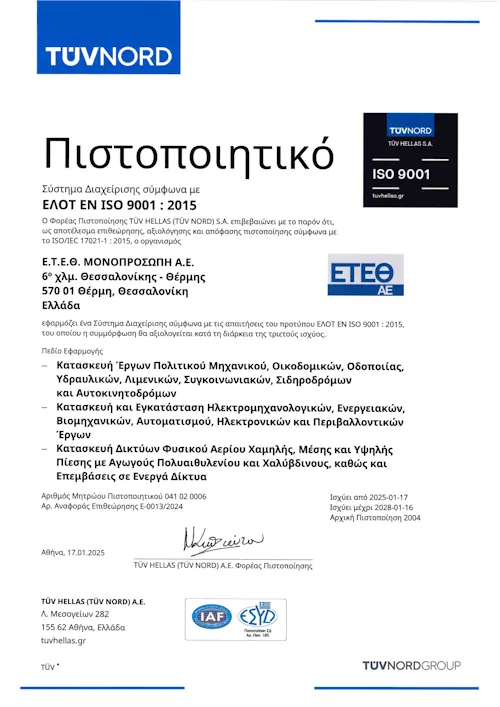Προκειμένου να επιτευχθούν οι παραπάνω στόχοι, η κατασκευή των τεχνικών έργων που αναλαμβάνει η Εταιρεία σχεδιάζεται αναλυτικά με γνώμονα την έγκαιρη και ασφαλή ολοκλήρωση των εργασιών, οι απαιτήσεις του εκάστοτε πελάτη μελετώνται ώστε να γίνουν πλήρως κατανοητές από το στελεχιακό δυναμικό της Εταιρείας, στο εύρος που ο καθένας εμπλέκεται, η Εταιρεία και τα εργοτάξια της λειτουργούν βάσει του Συστήματος Διαχείρισης Ποιότητας, που έχει αναπτυχθεί σύμφωνα με το πρότυπο ISO 9001:2015 με οδηγό τις απαιτήσεις της αγοράς και την εμπειρία από τα έργα, οι συνεργάτες της Εταιρείας επιλέγονται προσεκτικά και αξιολογούνται συστηματικά, το προσωπικό της Εταιρείας επιμορφώνεται και εκπαιδεύεται ανάλογα με τις ανάγκες που προκύπτουν, οι ενέργειες που λαμβάνονται για την αντιμετώπιση των απειλών και η αξιοποίηση των ευκαιριών είναι ανάλογες των δυνητικών επιπτώσεων στη συμμόρφωση των έργων με τις εφαρμοστέες απαιτήσεις, οι ανάγκες και οι προσδοκίες των ενδιαφερόμενων μερών αναλύονται και λαμβάνονται υπόψη στην λειτουργία της Εταιρείας και στην Οργάνωση των έργων, η τεχνογνωσία καταγράφεται, συστηματοποιείται και μεταφέρεται από έργο σε έργο.